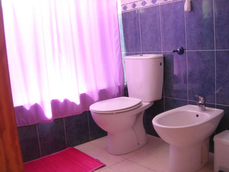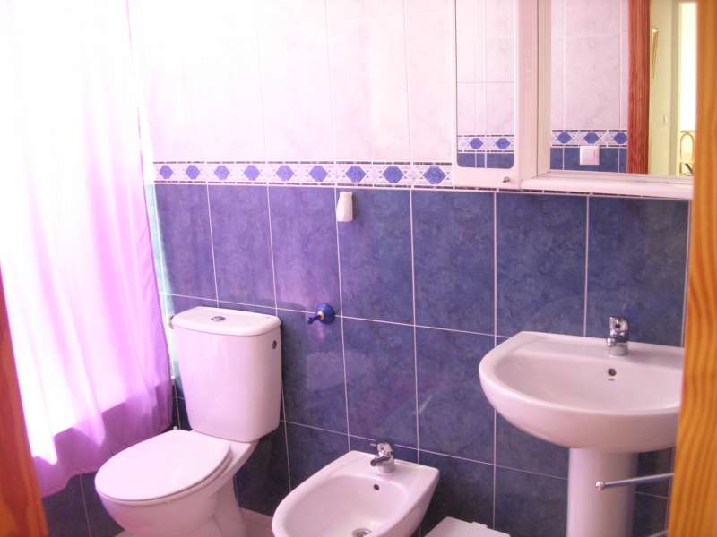 Ambos dormitorios tienen armario con perchas, y cajoneras. Entre los dos dormitorios tiene un baño completo con bañera y ducha, WC, bidet, lavabo y armario con espejo con luces.