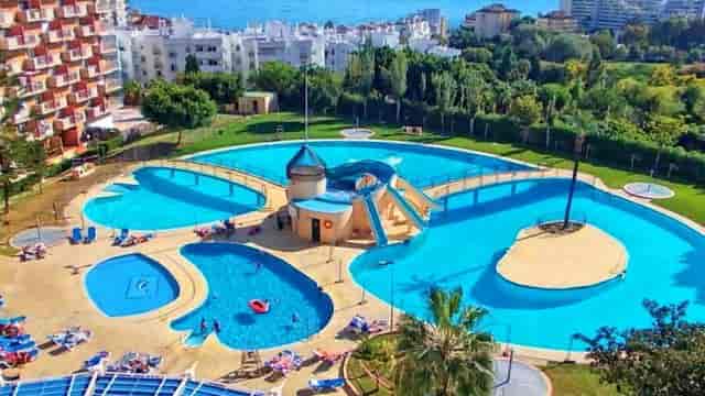 Piscinas con toboganes y restaurante. Aire acondicionado y Wifi prepago en recepción (24h).