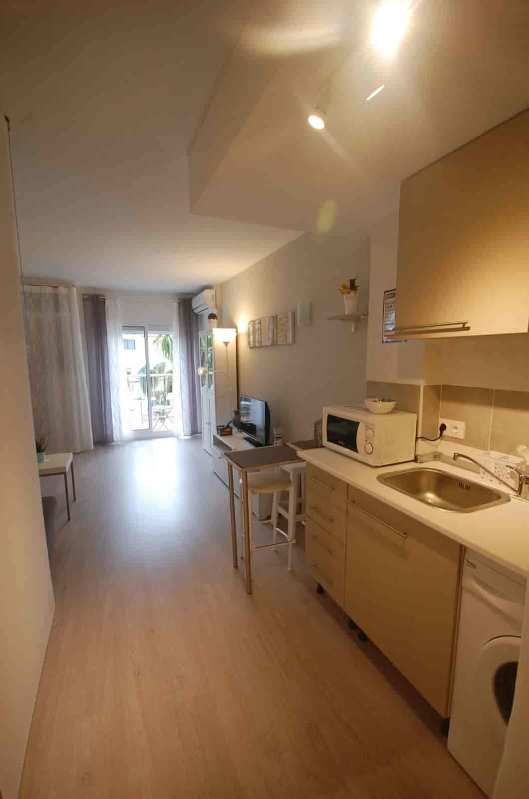 Estudio con baño completo, toallas y secador. Cocina americana con nevera, lavadora, microondas, tostadora, hervidor, cafetera y batidora. Dispone de un sofá cama amplio y una cama supletoria, además condicionado para un bebé con cuna de viaje y carrito de paseo que se reclina totalmente.