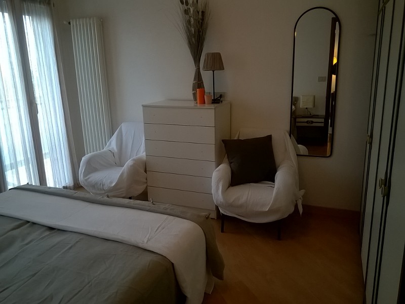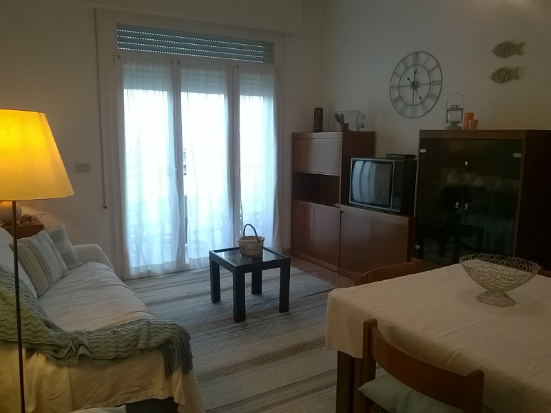 In summer season, rent a Cervia apartment in front of the sea, bi-exposed, 60 square meter, located on the first floor in a condominium with elevator consisting of: