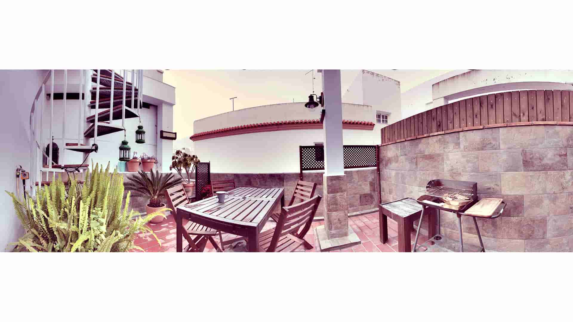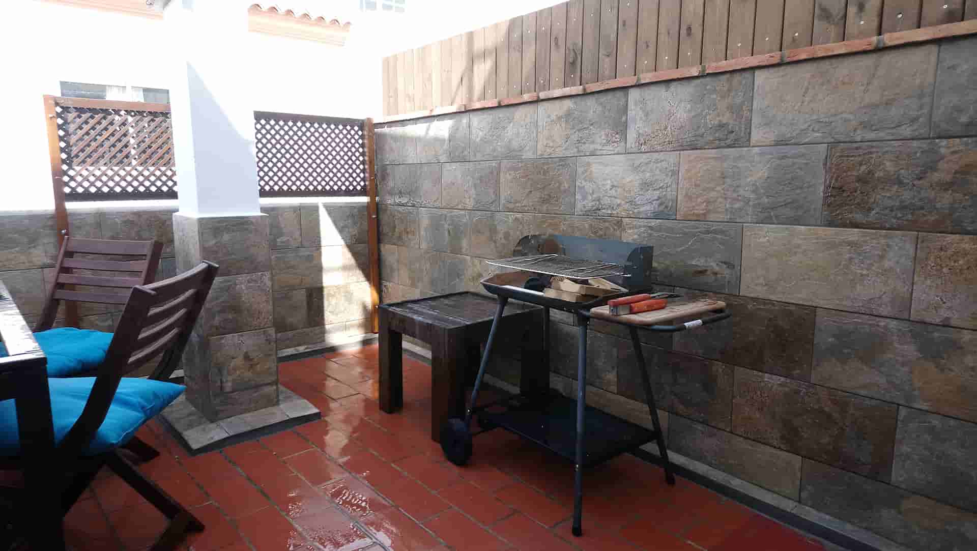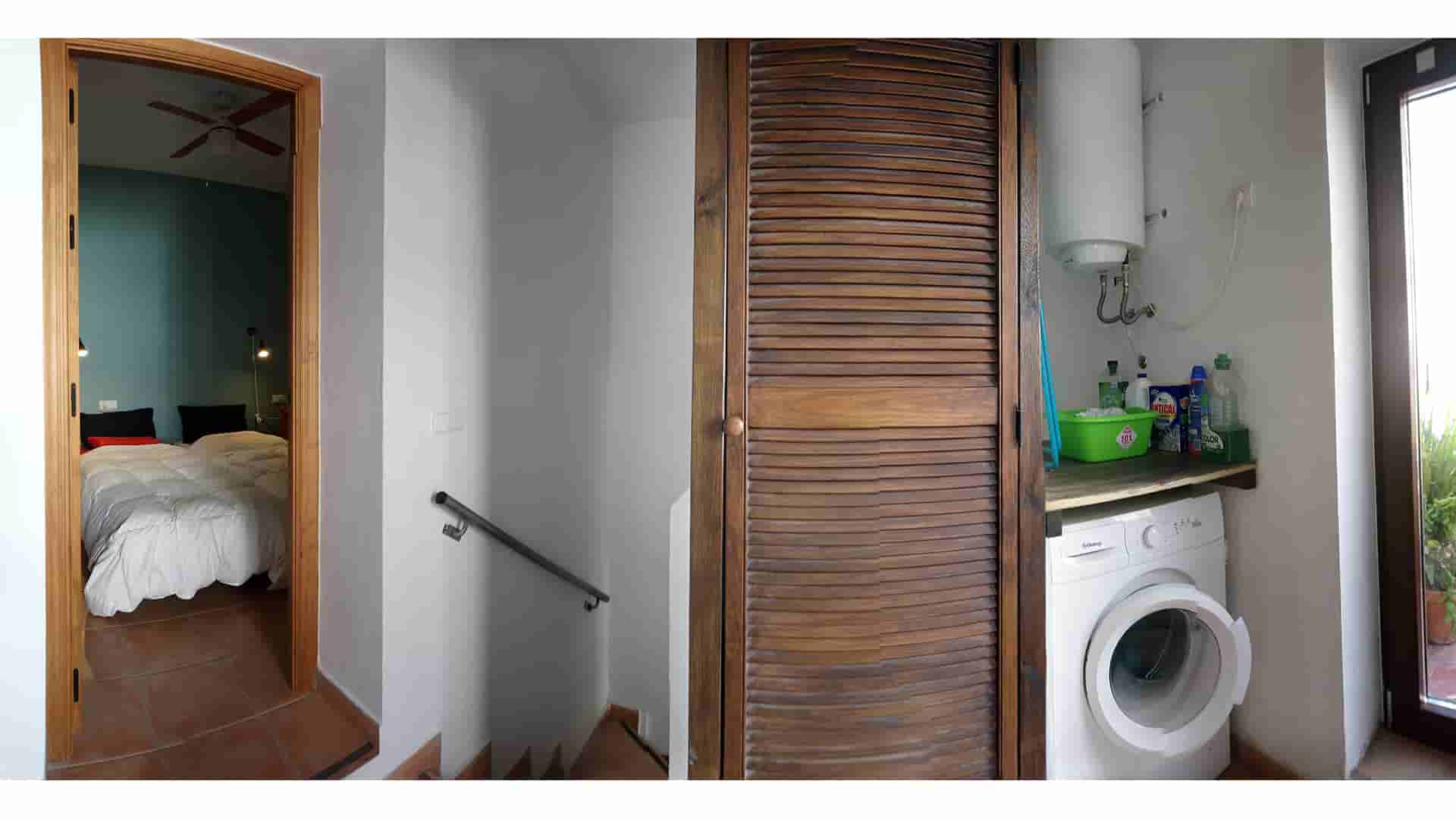 En la segunda planta se encuentra otra habitación doble, un baño, un armario, una lavadora, y una terraza equipada con mesa, sillas y barbacoa.