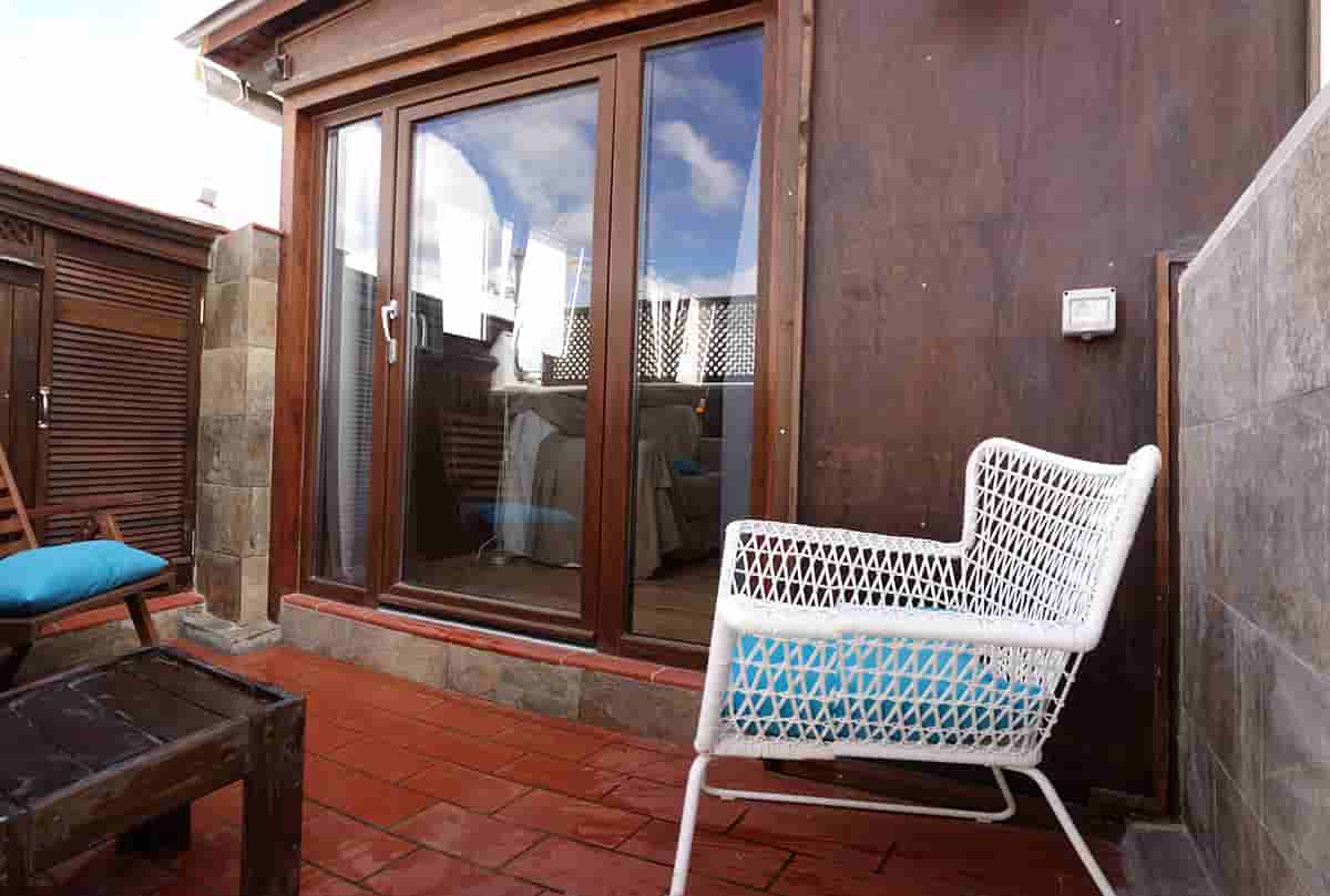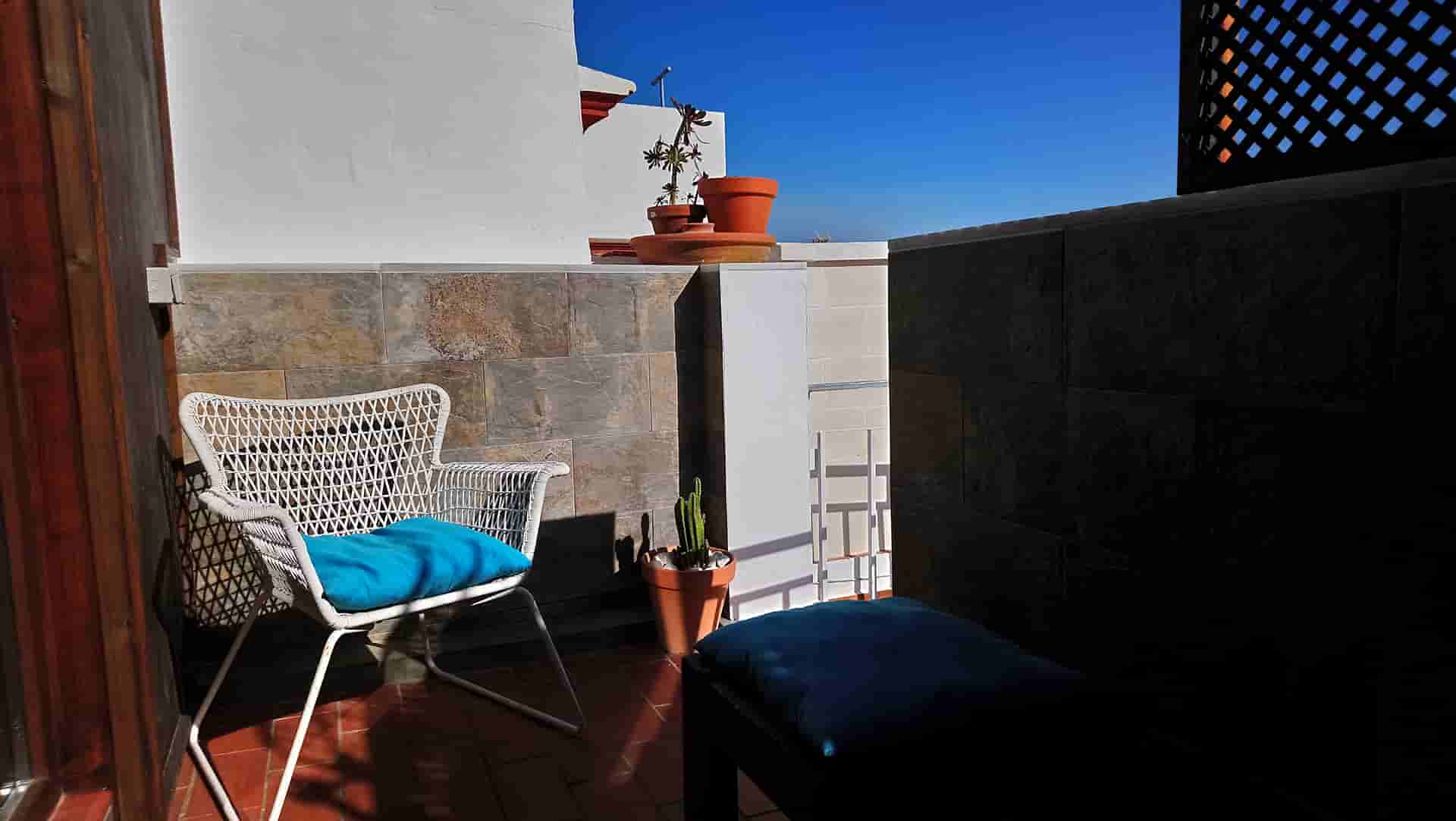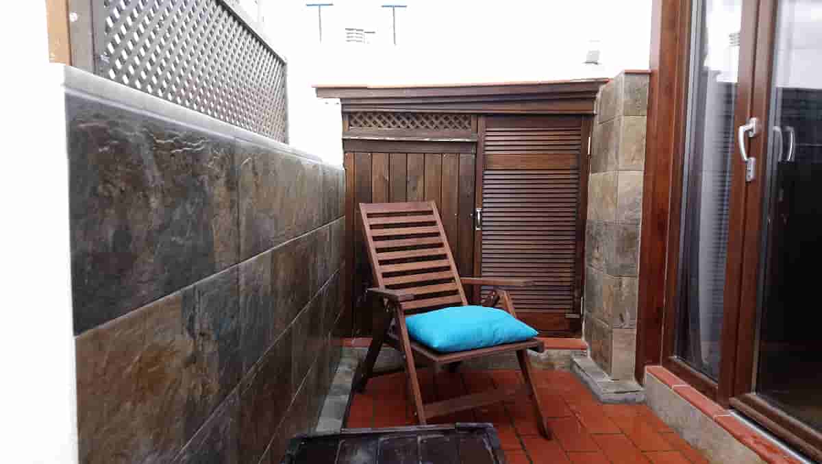 En la segunda planta se encuentra otra habitación doble, un baño, un armario, una lavadora, y una terraza equipada con mesa, sillas y barbacoa.