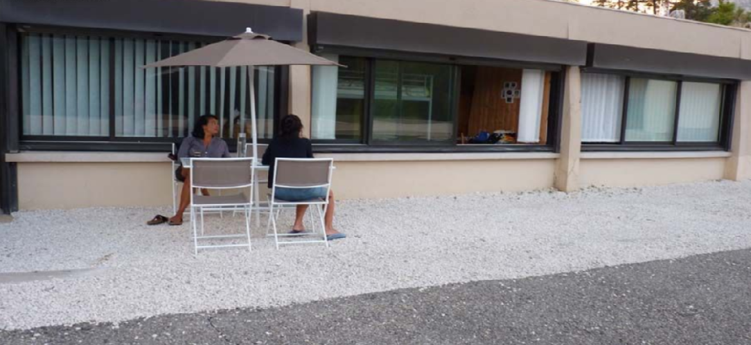 front doors in front of the apartment outside, access of about 200 m2 (can accommodate 2 cars)