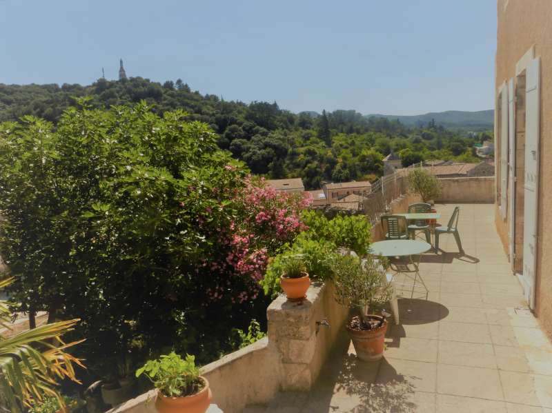 - the terrace in the sun with a splendid view over the roofs of the city and the scrubland of the hills.Â