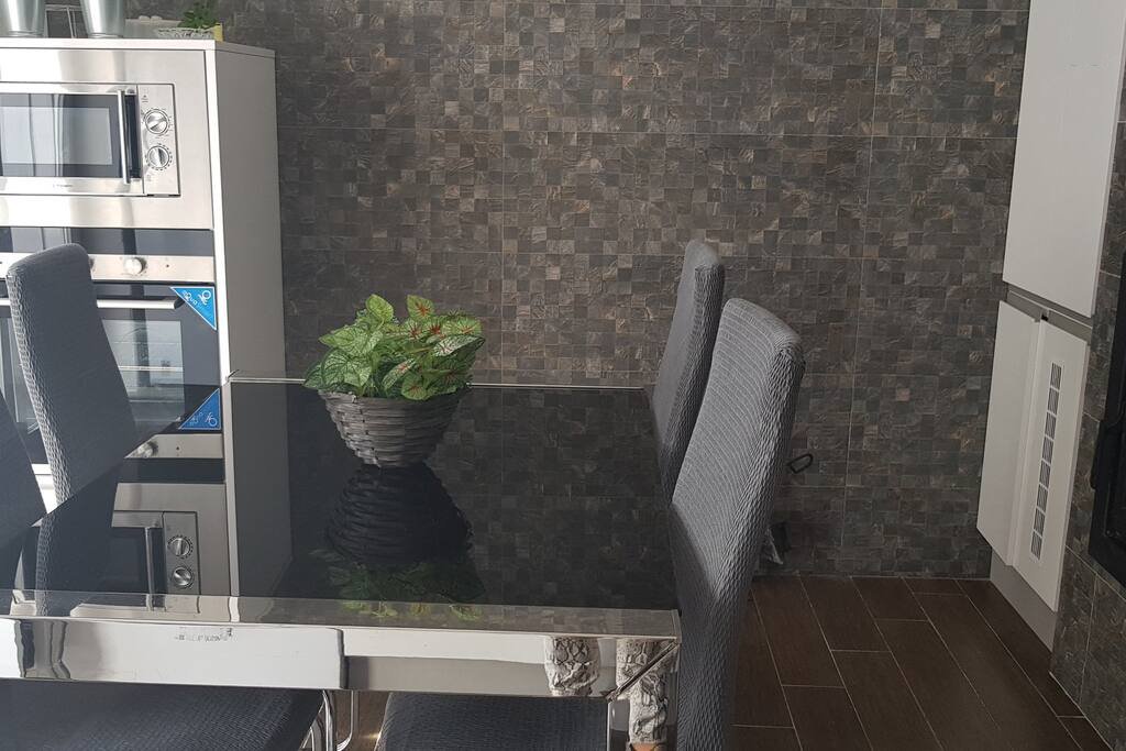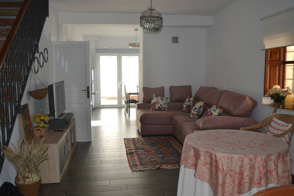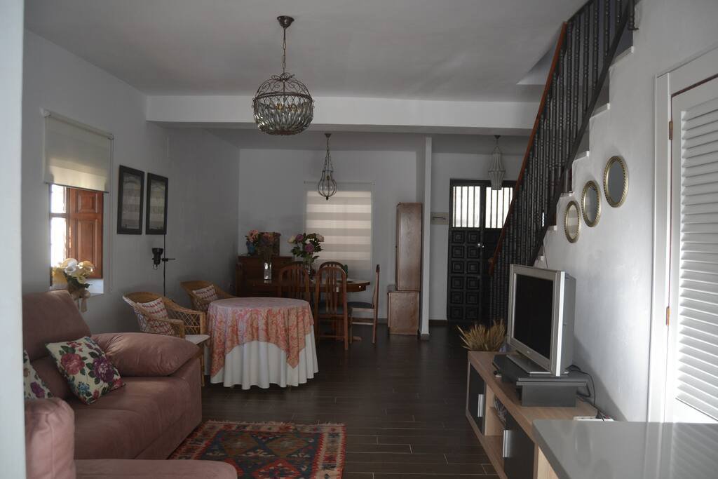 Espacios abiertos y funcionales para estar cómodos, salón amplio con diferentes ambientes para comer y descansar, al lado la cocina abierta al salón con su chimenea, aseo y patio exterior también para comer.