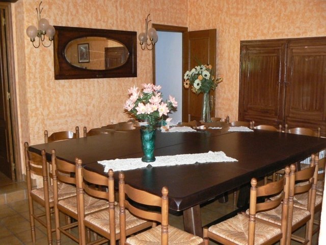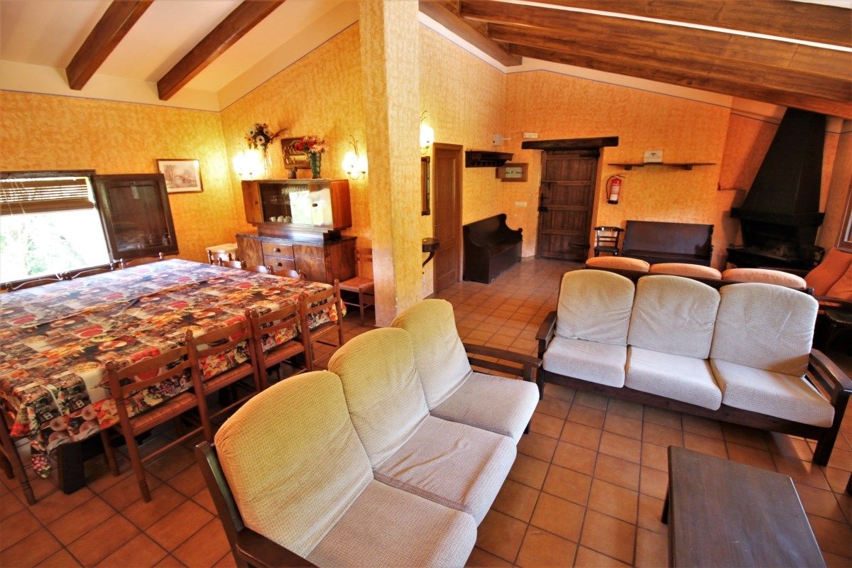 Consta de amplio salón-comedor con chimenea y TV, cocina totalmente equipada, con todos los pequeños electrodomésticos, microondas, horno, lavaplatos, 5 habitaciones dobles, 1 habitación doble con 1 supletorio, 1 habitación doble con 1 cama de 90 cm. y 1 supletorio, mas 1 sofá convertible, 1 habitación individual con 1 cama supletoria, 4 baños (ducha).