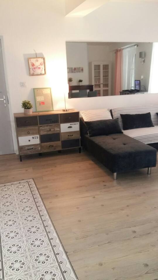 LIVING ROOM: convertible corner sofa. Numerous storage .. Buffet, Chest (Website hidden by Airbnb) flat screen with boxing Free. WiFi Internet and 160 TV channels.