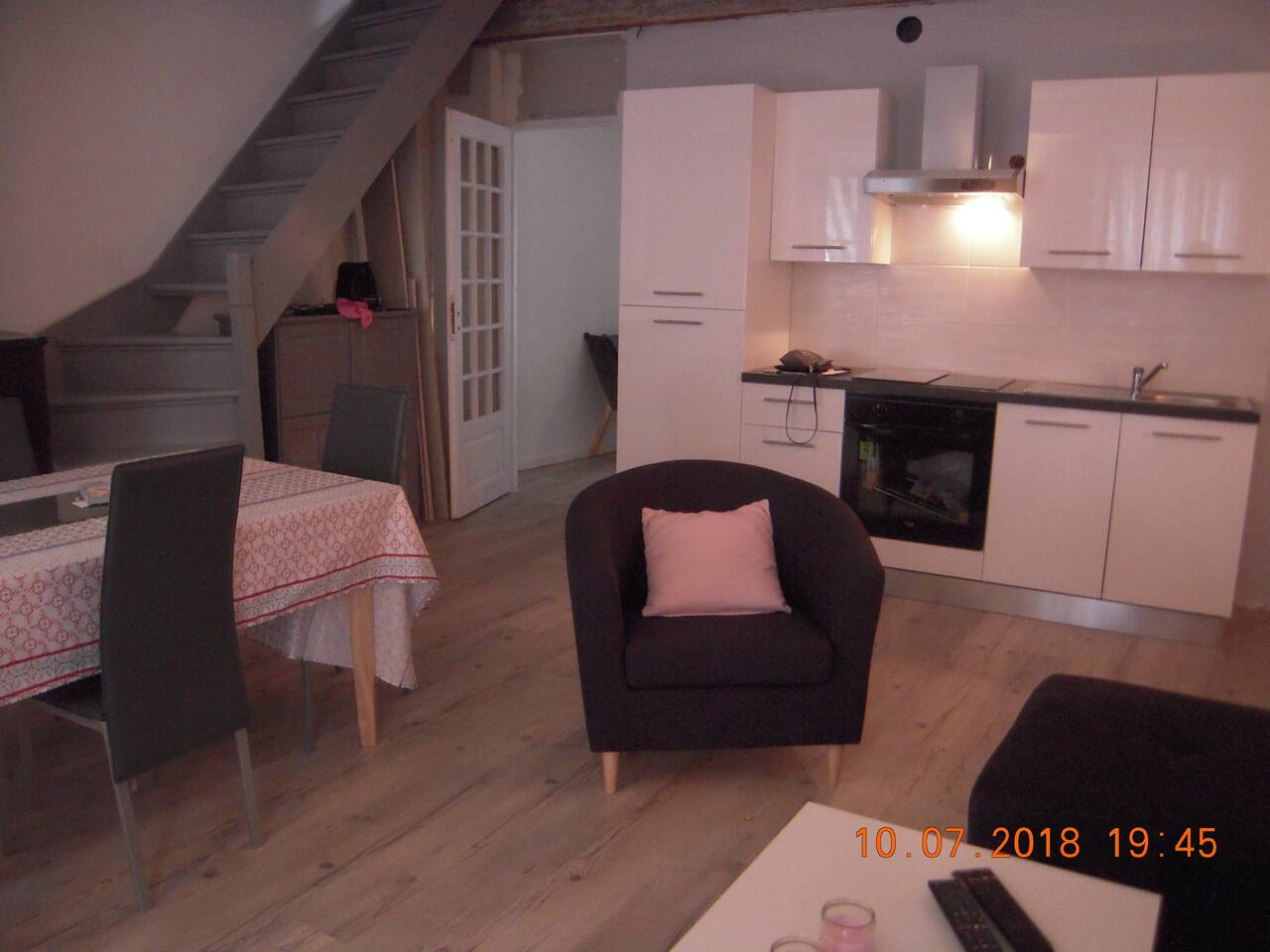 The whole apartment is at your disposal. The staircase in the apartment leading to closed attics unusable. No neighbors above.