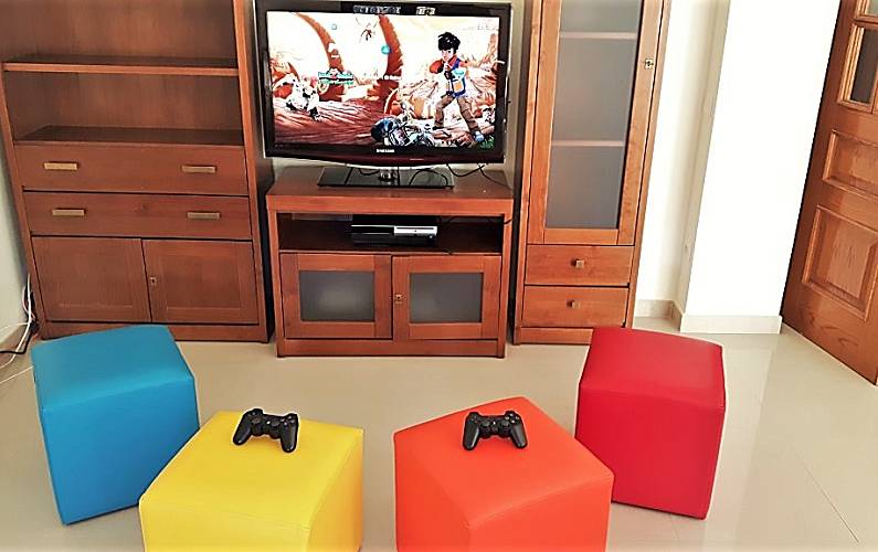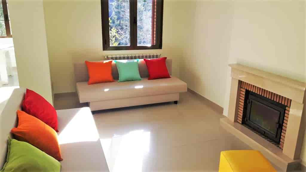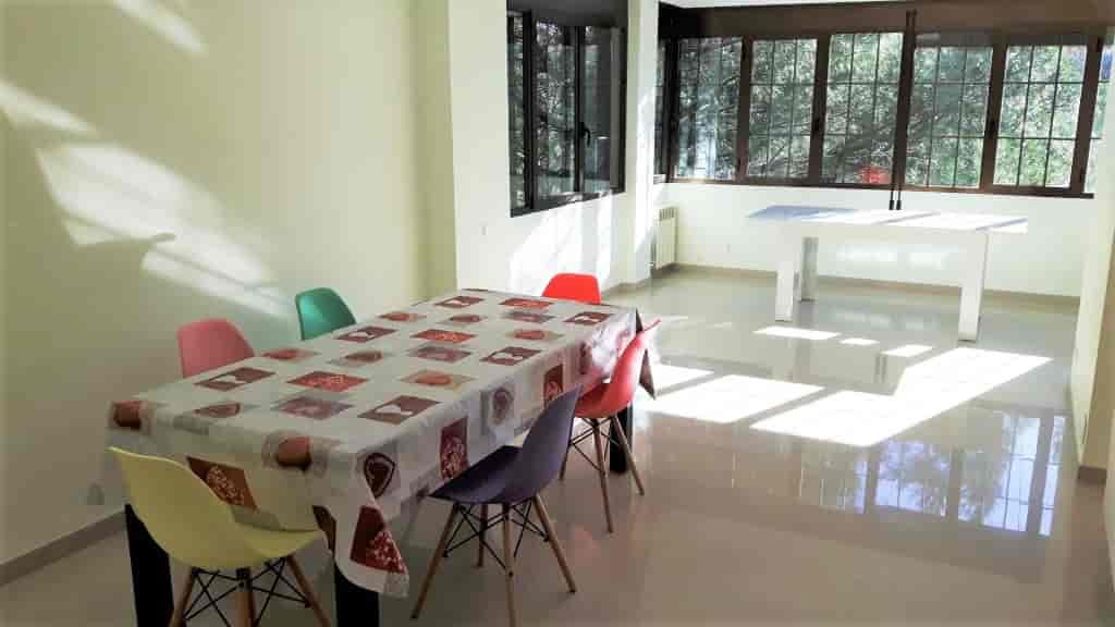 • Gran salón de 50m2 , muy luminoso, con chimenea. Cuenta con grandes ventanales con vistas a la naturaleza. Este salón está equipado con dos sofás que se convierten en dos camas de 130x190 cada una, dos mesas de comedor extensibles para dar servicio a 12 personas, televisión, acceso internet con fibra óptica, WiFi y Playstation