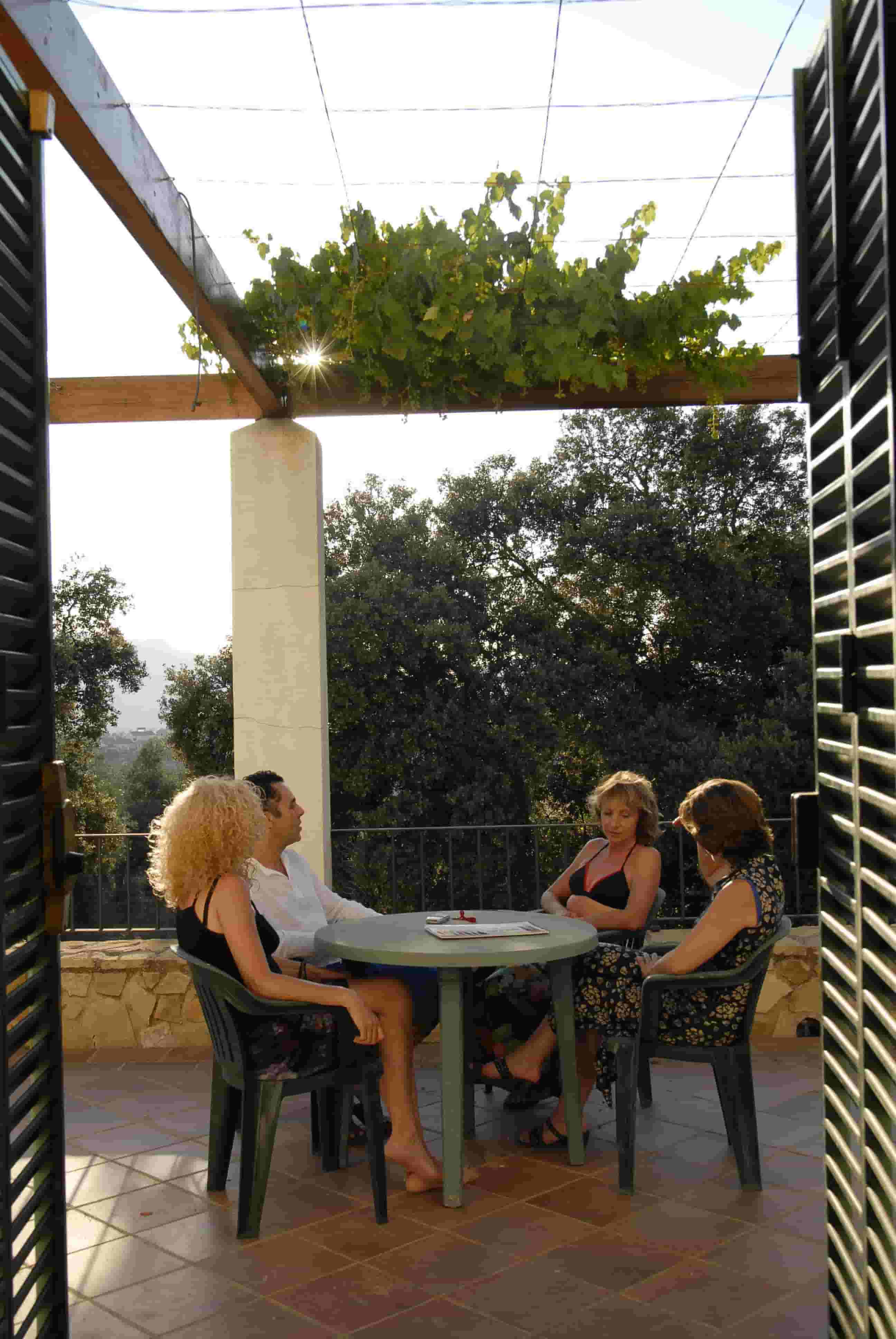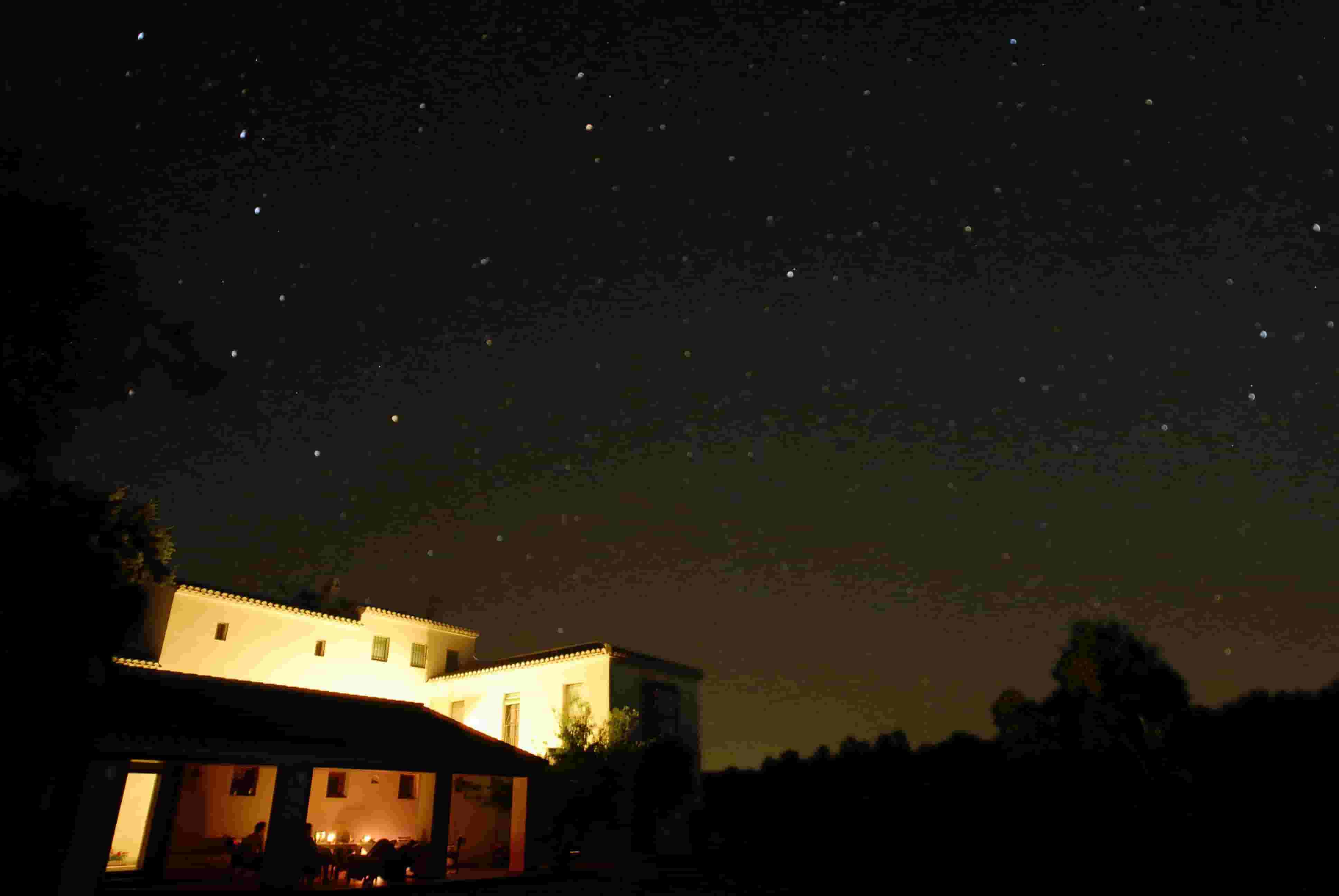 Un salón de 70 m2 une las distintas casas. Es una edificación restaurada de finales del siglo XIX, situada en un entorno de monte bajo con encinas y olivar.