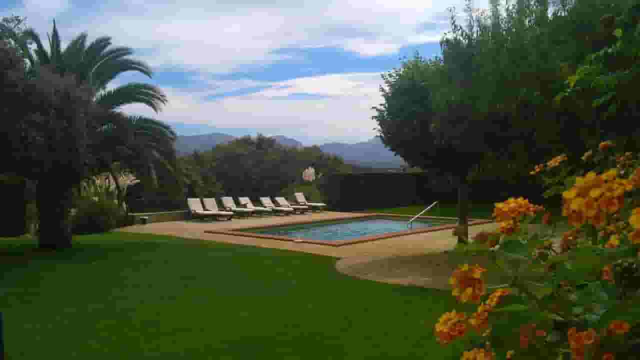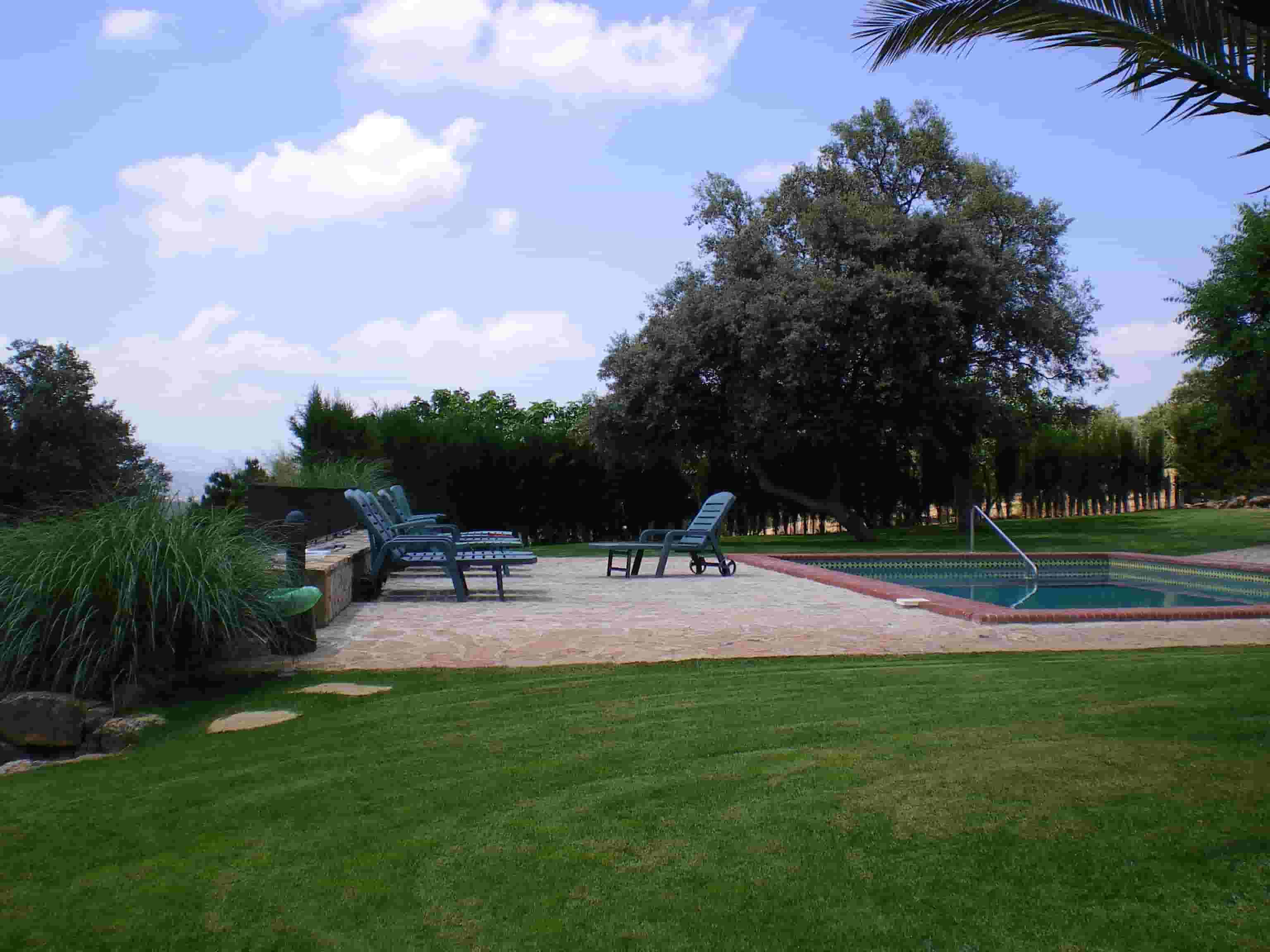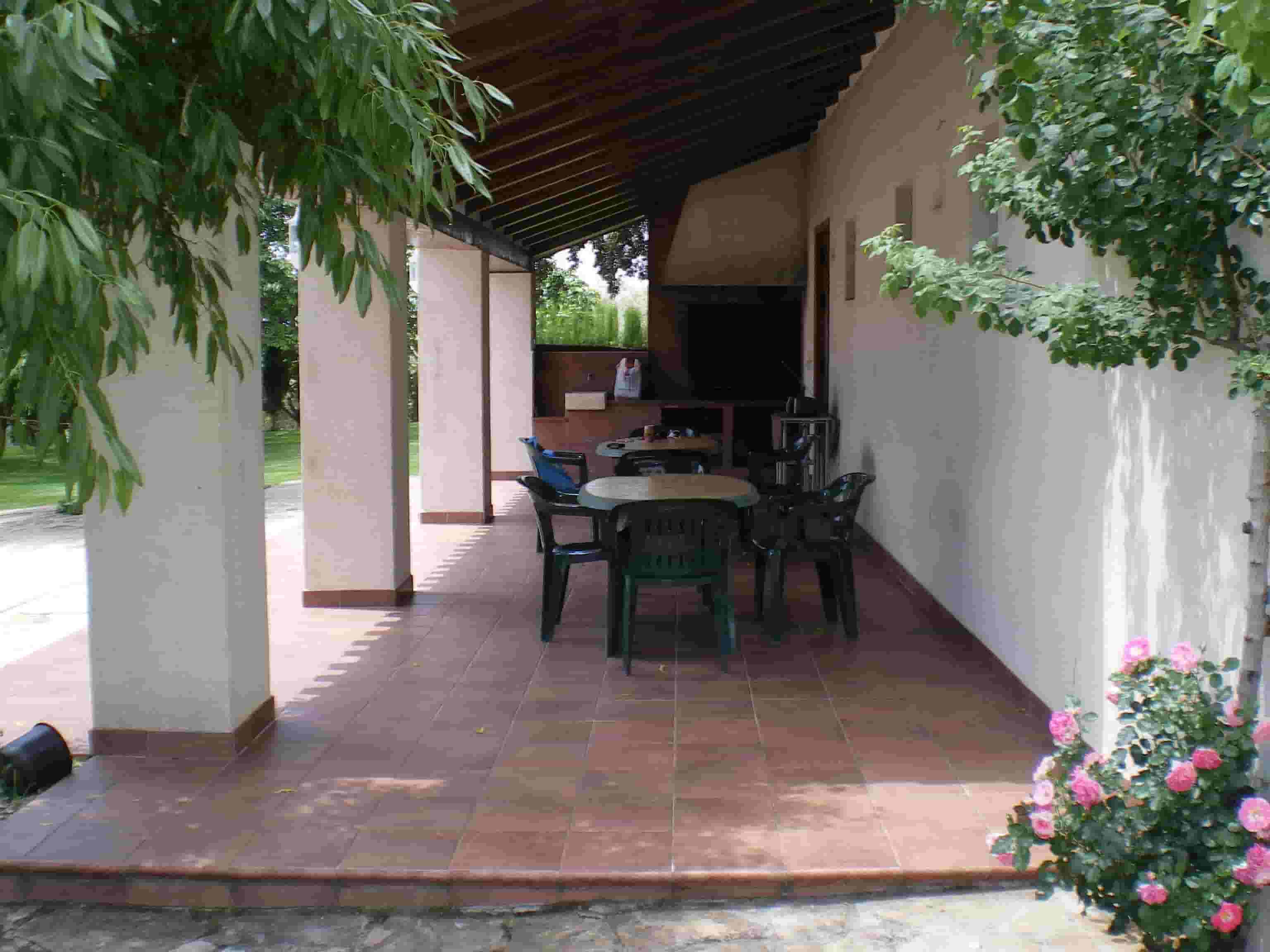 En el exterior encontramos una piscina con bello jardÃn, barbacoa y zonas adecuadas para camping, pista de padel junto a vestuarios y zona infantil.