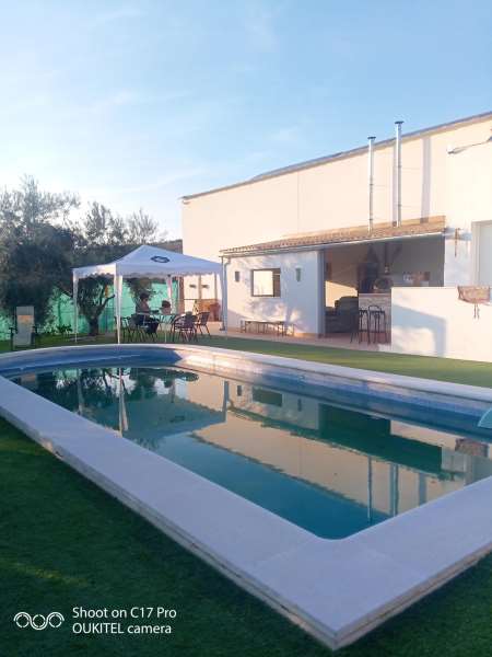 Dispone de cancela automática con mando a distancia, piscina con: césped, tobogán, barbacoa, horno moruno, cocina, fregadero, cuarto de baño, televisión, frigorÃfico, futbolÃn, columpios en zona de juego infantil. En la casa hay chimenea, televisión, wifi las 24 horas incluso en la piscina, cocina de leña además de la de gas, lavadora, menaje de cocina, batidora, frigorÃfico, agua caliente, cuarto de baño con ducha-mampara, secador de pelo, toallas, ropa de cama y mucho espacio en el exterior para que disfrutes de los dÃas de sol hasta en el invierno. Las horas de sol efectivo oscilan entre las 2800 y las 3000 anuales. Además de flores de jardÃn también hay algunos frutales tales como peral, manzano, naranjos, limonero, kaky, nÃspero, ciruelo, higueras y un granado. En el recinto de la piscina se encuentran cuatro fabulosos olivos. En la fachada de la casa hay un espléndido emparrado de uva de mesa. La Casilla Miguelin cuenta en la actualidad con cuatro habitaciones con una capacidad máxima de 10-14 personas, una salita, un salón comedor con chimenea y ventiladores de techo, un cuarto de baño, una cocina campera y un enorme patio con pozo, grifo con pileta y fuente. Todas las dependencias se encuentran en la planta baja. Visite nuestra web casillamiguelin. com Si tienes mascotas, tráelas contigo. Bajo. Garaje. Amueblado. Terraza. Calefacción. Piscina. JardÃn. Se aceptan mascotas Codigo registro turistico: VTAR/CO/00386