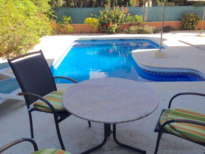 Espectacular chalet en parcela de 850 m2 y 365m2 construidos en segunda línea de playa con vistas al mar a 80 m de la playa, piscina privada y solarium con BBQ; 4 dormitorios con baño incorporado; aseo; salón-comedor; cocina-comedor y despensa; terraza con vistas al mar, solarium con ducha, barbacoa y fregadero; ascensor 4 plantas; piscina; zona de aparcamiento techado para 2 coches. Urbanización de lujo Puerto Rey dispone de canchas de tenis, futbol, zona infantil, centro comercial, zona deportiva panel-tenis-golf, piscina, etc. Ideal para hasta 3 familias, dormitorios amplios en suite, cómodo porque tiene la zona de día (salón, terraza y cocina) en planta alta con vistas pero dispone de ascensor. Dispone de conexión WIFI en toda la casa, armarios en todas las habitaciones, Aire acondicionado y calefacción por splits, chimenea en salón. Jardín totalmente equipado y cuidado, jardineras, olivo, césped, buganvillas, etc