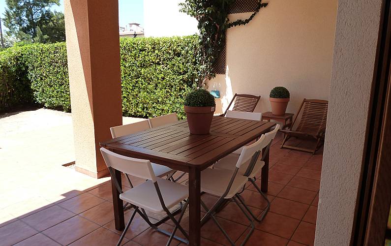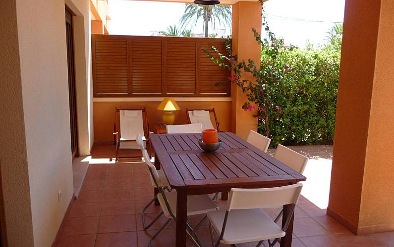 Una terraza cubierta en la zona opuesta con salida desde el dormitorio principal y desde el salón. Continúa con terraza descubierta ideal como solarium y sigue jardÃn privado. Acceso con rampa muy cómoda especial minusválidos o carritos bebés desde la calle. Ascensor desde sótano garaje que facilita acceso carritos compra, bebés, maletas.