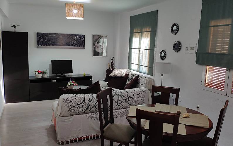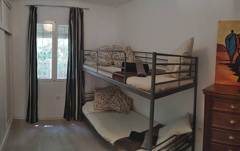 Tranquilo piso de 2 dormitorios con cocina independiente y espectacular terraza al campo. Disfruta de las comodidades de vivir en el centro de la ciudad con el encanto y la tranquilidad de estar en plena naturaleza. Cocina independiente y completamente equipada. Baño con ducha, exterior. Amplio salón comedor con aire acondicionad, muy luminoso. Dos amplios dormitorios con armario empotrado uno con cama de matrimonio y el segundo con litera.