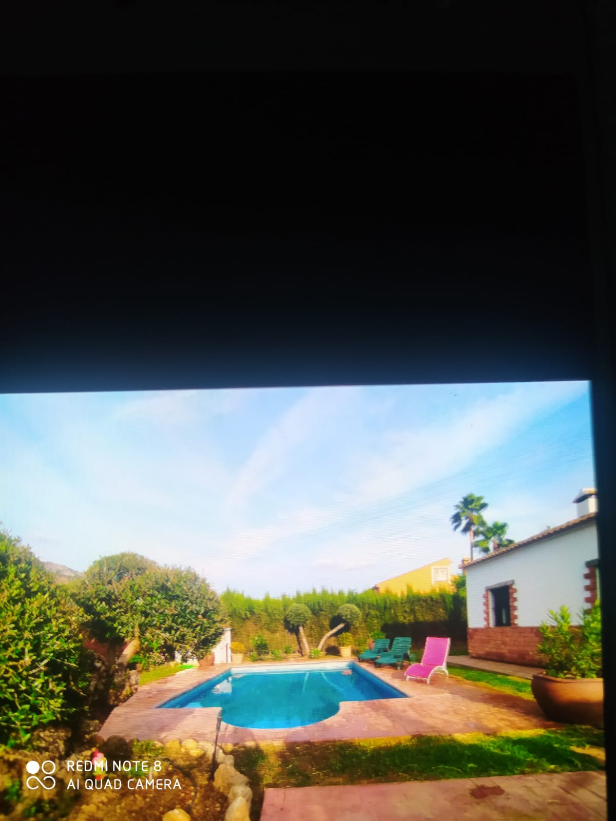 En el exterior hay un jardín, terraza, piscina, barbacoa y un proche.