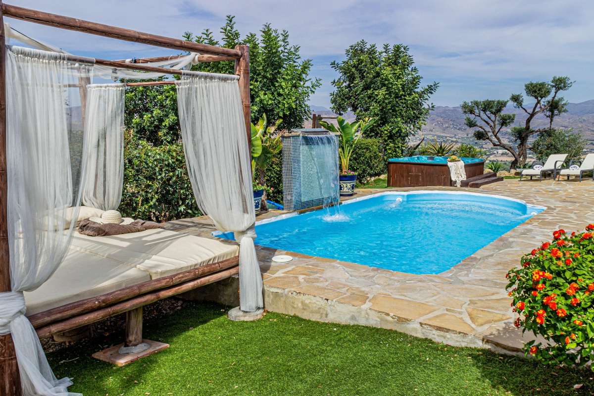 Si usted quiere tomar el cálido sol del verano andaluz, sólo tiene que echarse en su fabulosa cama balinesa o si prefieres en una de las tumbonas, y en cuanto quiera refrescarse, en su fabuloso jacuzzi exterior o en su piscina privada con cascada la acogerá con aguas refrescantes. Junto a la barbacoa tiene un pequeño estanque fuente y cascada con nenúfares.