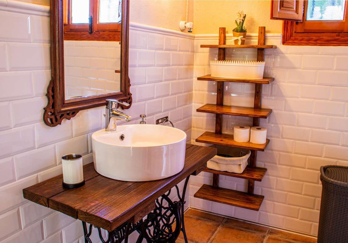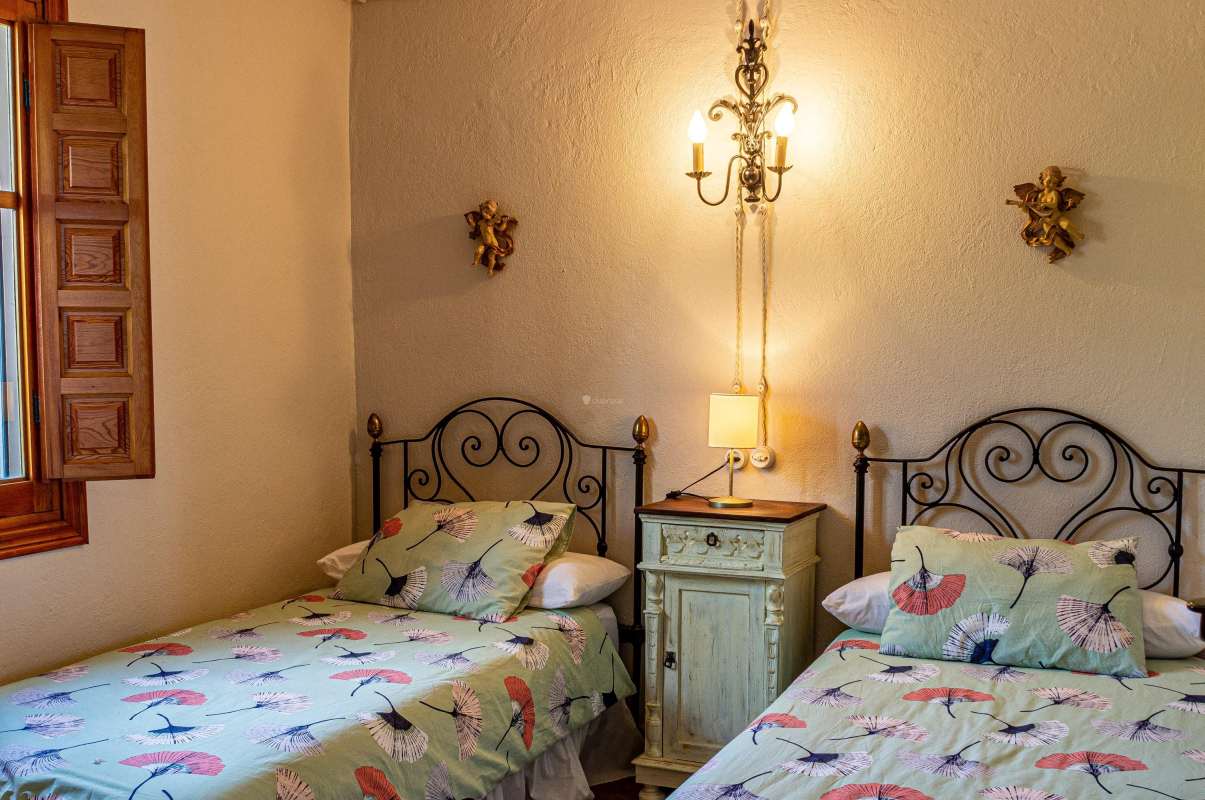 La casa principal dispone de dos plantas, y un espacio habitable en los que la decoración muebles antiguos rústicos y el uso de colores cálidos, crean un ambiente extremadamente acogedor.