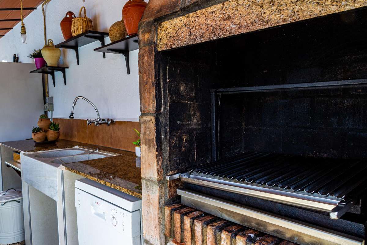 De los dos cuartos de baño, uno interior y otro exterior junto a la barbacoa con plato de ducha. La casa dispone de un luminoso salón comedor con chimenea, que comparte espacio con la cocina y sala de estar completamente equipada, con sofá cama .