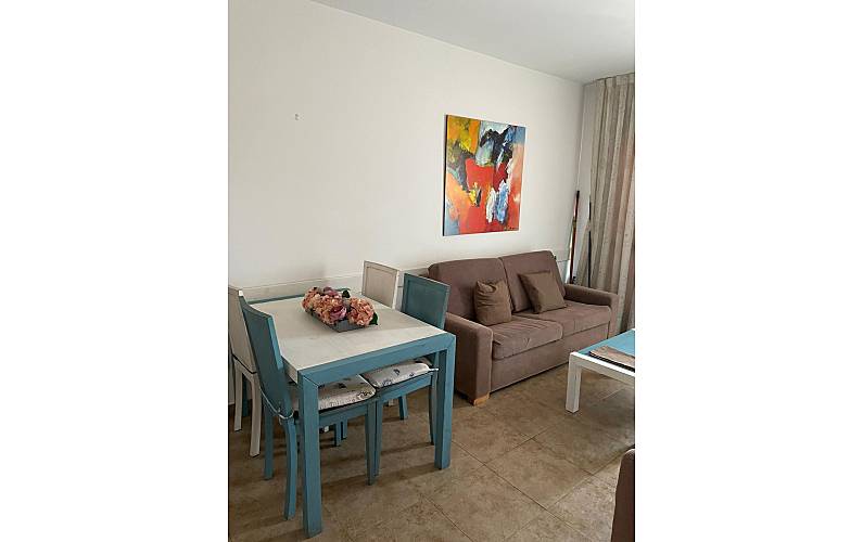 Apartamento en complejo con piscinas y jardines, con buenas vistas, muy cerca del centro comercial, supermercados y todos los servicios. Estado del apartamento excelente, cocina americana con todos los electrodomésticos, salón comedor con sofá cama para dos personas, dormitorio de matrimonio, baño completo, aires acondicionados en todos los habitáculos, terraza para desayunar con vistas al mar, parking privado gratuito.