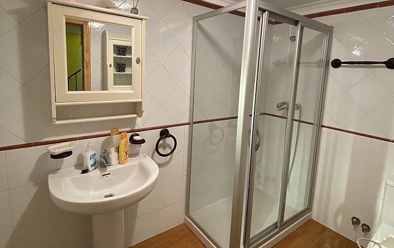 Casa con 5 dormitorios amplios: 3 con cama de matrimonio y dos con cama doble. Cuenta con 3 baños completos y un aseo en la planta baja. Dos de los baños están integrados en dos de las habitaciones de matrimonio, el tercero es compartido.