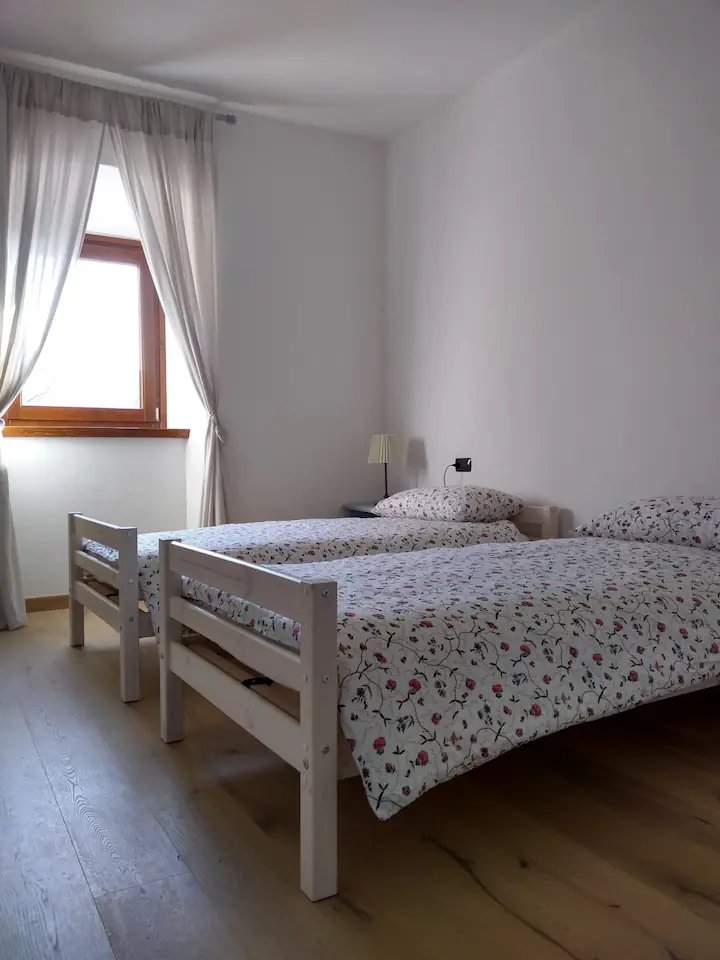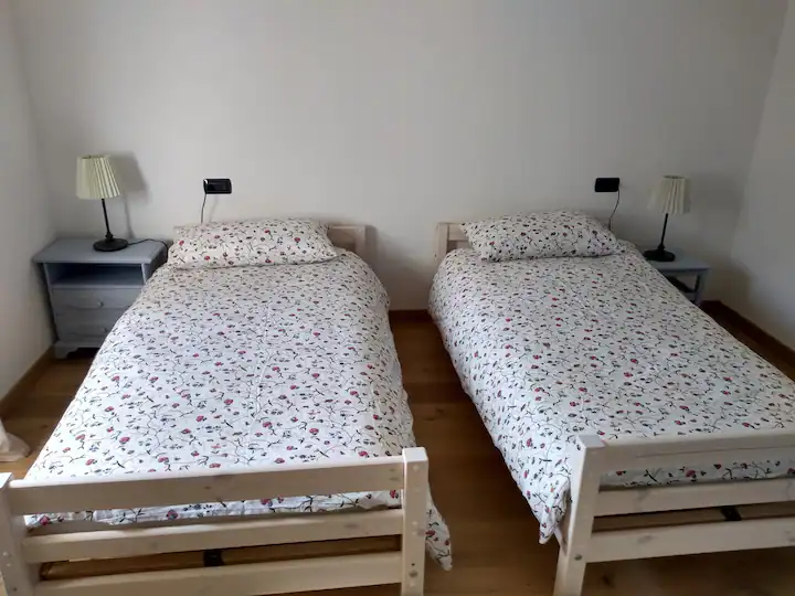 the flat has 3 double bedrooms (2 doubles and 1 with 2 single beds) and can accommodate 6 people.It is possible to request, free of charge, a cot for children up to 3 years of age and up to 2 extra beds at a cost of 20 euros each per day. The cottage has 3 bathrooms ( 1 inside the bedroom, 1 outside and 1 outside service bathroom with washing machine ).