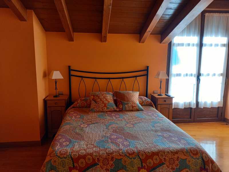A la segunda planta se accede por las escaleras de madera que terminan en otra zona común, zona de lectura o relax, unida con la terraza. Desde aquí se puede disfrutar de las maravillosas vistas que ofrece este valle. Además en esta planta están las 3 habitaciones restantes, distribuidas bajo cubierta de madera de roble.