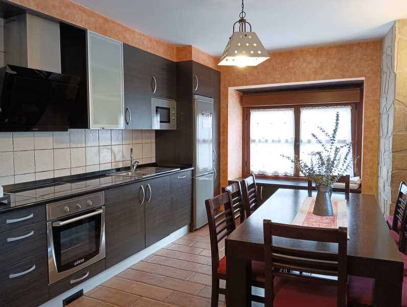 ERBURU I: Vivienda de 120 m2 distribuidos en una sola planta, con capacidad para 4 personas y buena accesibilidad. Posee una amplia y acogedora cocina-comedor-sala de estar con fogón de leña, cómodos sofás, tv, dvd y aparato de música, y está decorada con esencia rústica pero actual. La cocina está completamente equipada tanto en electrodomésticos (vitrocerámica, horno, microondas, lavavajillas, lavadora, cafetera...) como en lencería (paños, mantelería...).