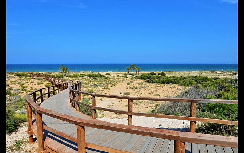 Apartamento en primera línea en un entorno maravilloso (playa protegida). Muy cercano a Elche y a Alicante y solo 2 Km del aeropuerto. Rutas, senderos, playas, todo tipo de servicios.