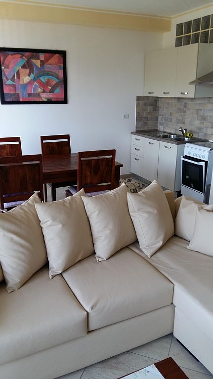 Open space with a full kitchen, large living room with sofa bed and TV FULL HD