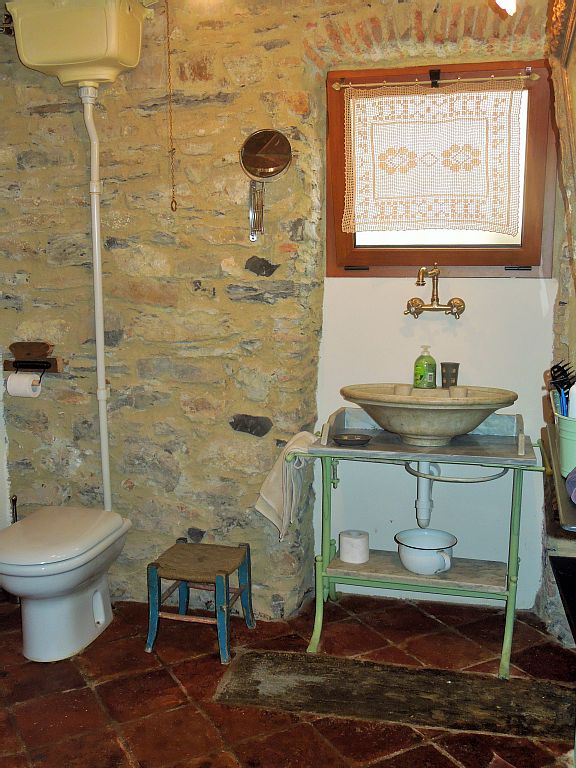Always on the mezzanine is located the second bathroom, with a sink antique iron, (on which a time was placed a basin and a jug with water to wash, now readjusted with a sink glass definitely the most practical of the basin.), A bathtub with legs in the style of Louis XVI for romantic and relaxing baths, a toilet, this room also has a large window with a view of the sky and land.