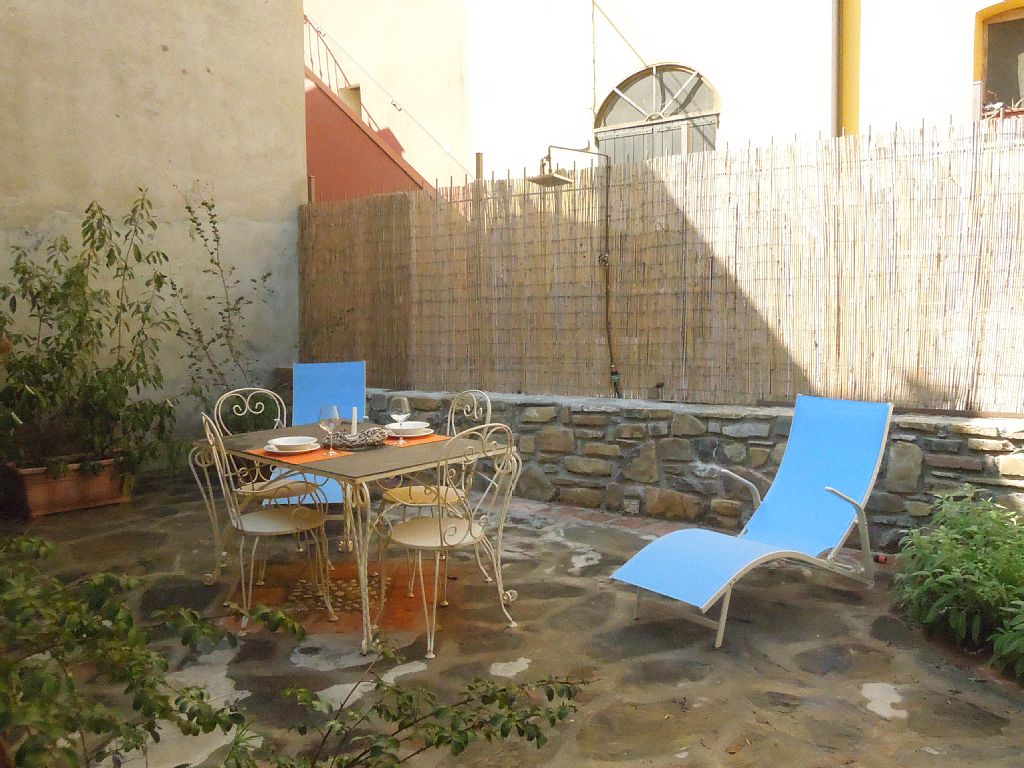 Externally the property has a private courtyard (in ciappe slate Ligurian) of 60 square meters, completely fenced furnished with an iron table and slate, chairs, a marble sink, a shower crafts and flowers.