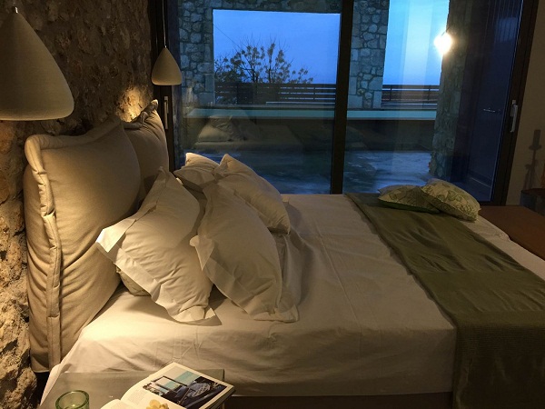From the main entrance to the comfy and bright sitting room, the large openings make you feel that the outside and the inside of the house merge into one! This last happens also to the two master bedrooms which are on the same level. The first large bedroom has two single beds and its own bathroom illuminated with light entering from the ceiling, which has been specifically designed, meeting all specifications, equipped to be accessible for people with reduced mobility. Rock is the main building material in the decoration of this superb and comfortable bedroom which also has a view to the pool and the sea. The second bedroom also has its own bathroom, a large double bed and a view to the pool and the yard. The romantic decor with earthy colors and materials creates a relaxation feeling to the visitor. An internal window lets the daylight inside the bathroom. In the living room, the corner-shaped couch can be used as an extra sleeping space for two people. At the same level, there is also a kitchenette, a washing machine and an elevator leading at the 2nd level of the house. An impressive staircase leads from the living room to the 2nd floor of the house. Reaching the 2nd level, there are two choices to enjoy the lovely view towards Myrtos Bay: either from the large porch with the pergola, the BBQ with the built seating or from inside the impressive dining room area. The monastery-style dining table in the middle of the room catches the visitor’s eye away from the magnificent sea view. At the same area, there is a large kitchen totally adapted to the needs of people of reduced mobility. A garden full of beautiful flowers next to the kitchen completes the setting. At this level there is an extra bathroom. The elevator, the covered parking space leading at the entrance level of the house as well as the design in total in addition to the villa's equipment, allows everyone to enjoy their vacation comfortably, without obstacles!