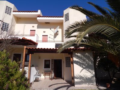 The house is split in three levels with attic amazing garden 300 sqm and panoramic sea view. The ground floor is consisted of a spacious living room with fireplace, a cozy kitchen a bathroom. On the first floor has the master bedroom (double bed and a big closet) and the second bedroom with two beds, at the same floor there is a bathroom, on the third level is the attic which is a big bedroom (double bed). The maisonette has large verandas and nice sea view, that offer precious relaxing moments, and is equipped with all the necessary house equipment, air condition, , aluminum window frames with double glass, indoor staircase, Internet, and barbeque .