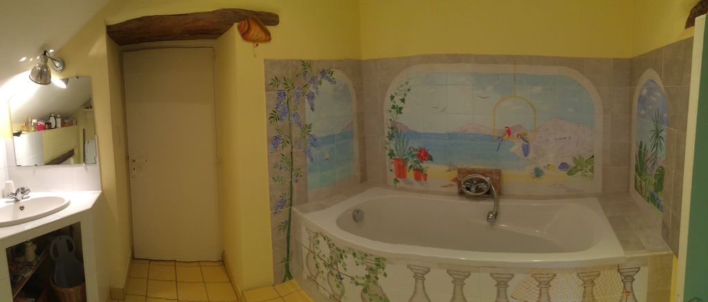Au 1er étage - 5 chambres et 3 salles de bains: Suite parentale (lit de 180 cm) avec salle de bain (douche et baignoire) + WC, une chambre avec un lit double (lit de 180cm) partageant une salle de bain avec une chambre ayant 2 lits simples de 90cm (pouvant être réunis pour former un grand lit de 180 cm) et un lit d'enfant , une chambre avec 2 lits simples de 90cm (pouvant être réunis pour former un grand lit de 180cm), une chambre avec un lit de 140cm, WC, salle de bain avec WC, lingerie (machine à laver le linge et sèche linge, centrale vapeur).