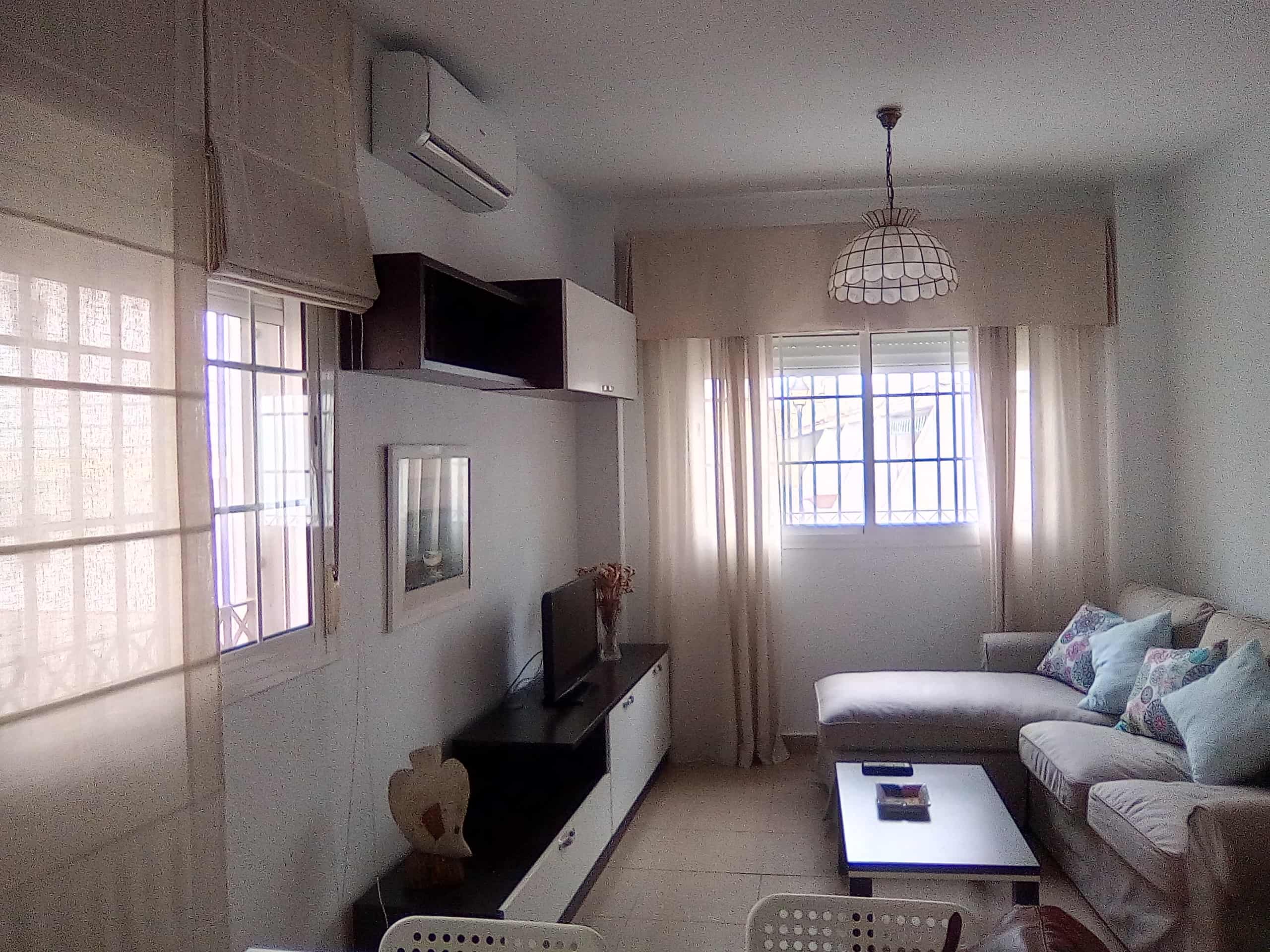 Precioso apartamento, muy luminoso, en pleno centro de Punta Umbría. Consta de 2 dormitorios uno con cama de matrimonio y otro con dos camas individuales, totalmente amueblado, cocina completamente equipada, aire acondicionado. A 5 minutos de la playa y la ria, a 1 minuto andando de bares, restaurantes y todos los comercios pero sin el bullicio al estar situado en una calle muy tranquila. Perfecto para parejas o familias con niños.